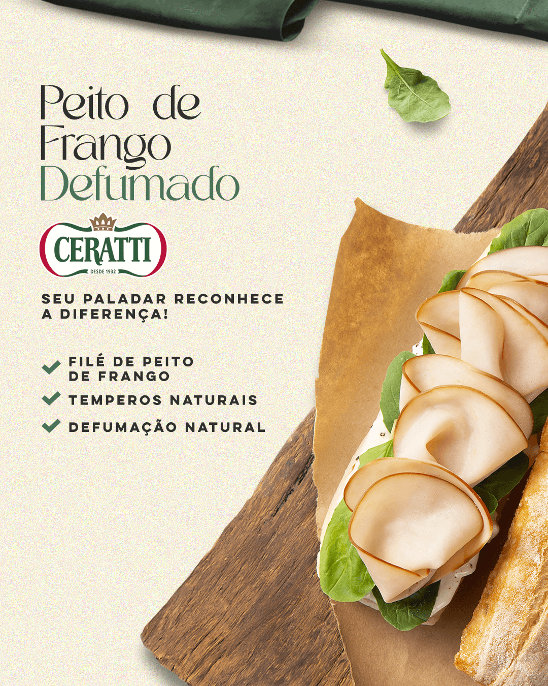 A Ceratti identificou a necessidade de reposicionar seu Peito de Frango Defumado, destacando não apenas seus atributos sensoriais, mas também sua versatilidade no dia a dia. O desafio era mostrar o produto como uma alternativa mais saborosa e sofisticada ao tradicional peito de peru, conquistando um público exigente, atento à experiência gastronômica e em busca de praticidade sem abrir mão do prazer à mesa.